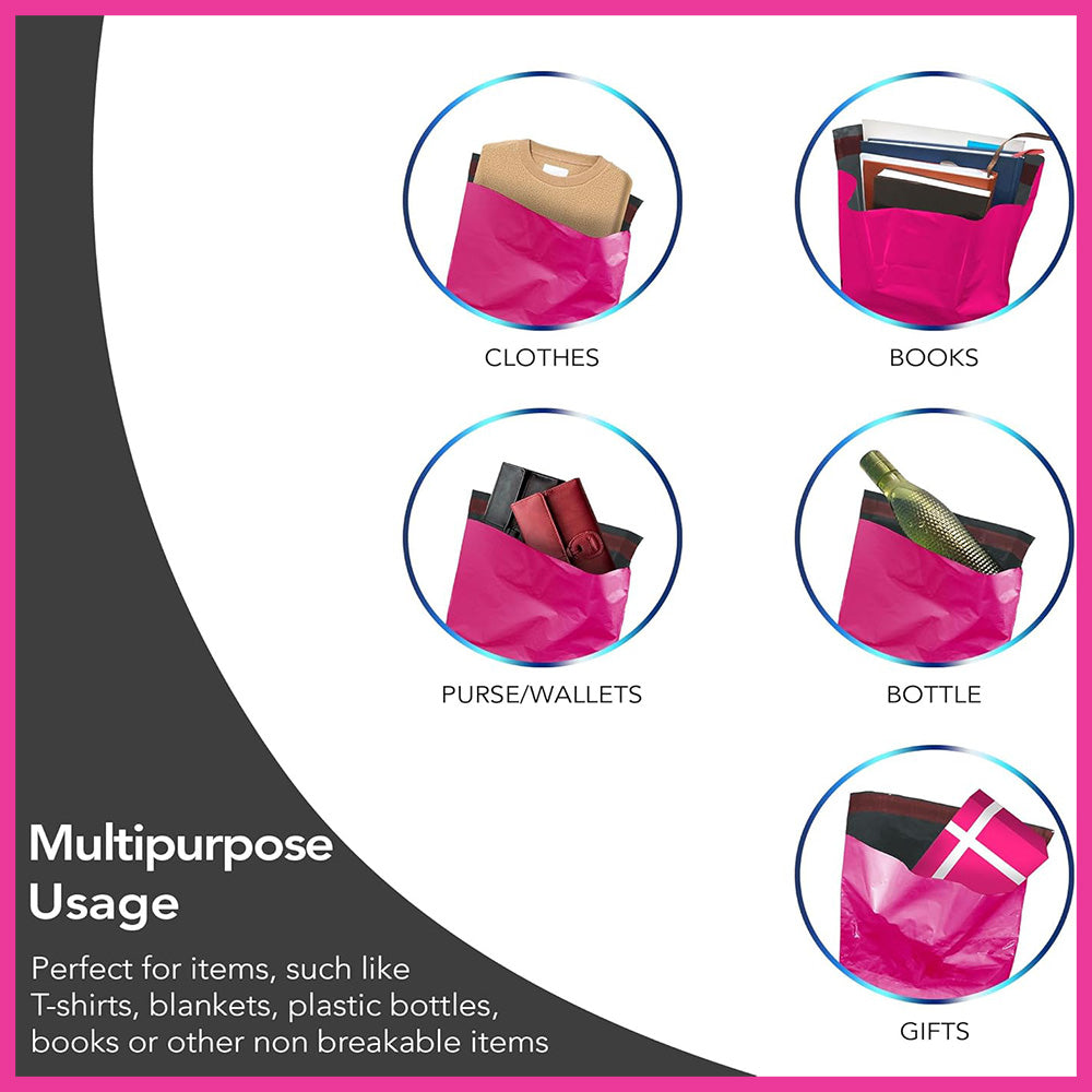 With 10 bags in each size — 6x9, 9x12, 10x14, 12x16, and 14x19 — you always have the right fit ready. The opaque hot pink finish keeps contents private while helping your parcels stand out on delivery.